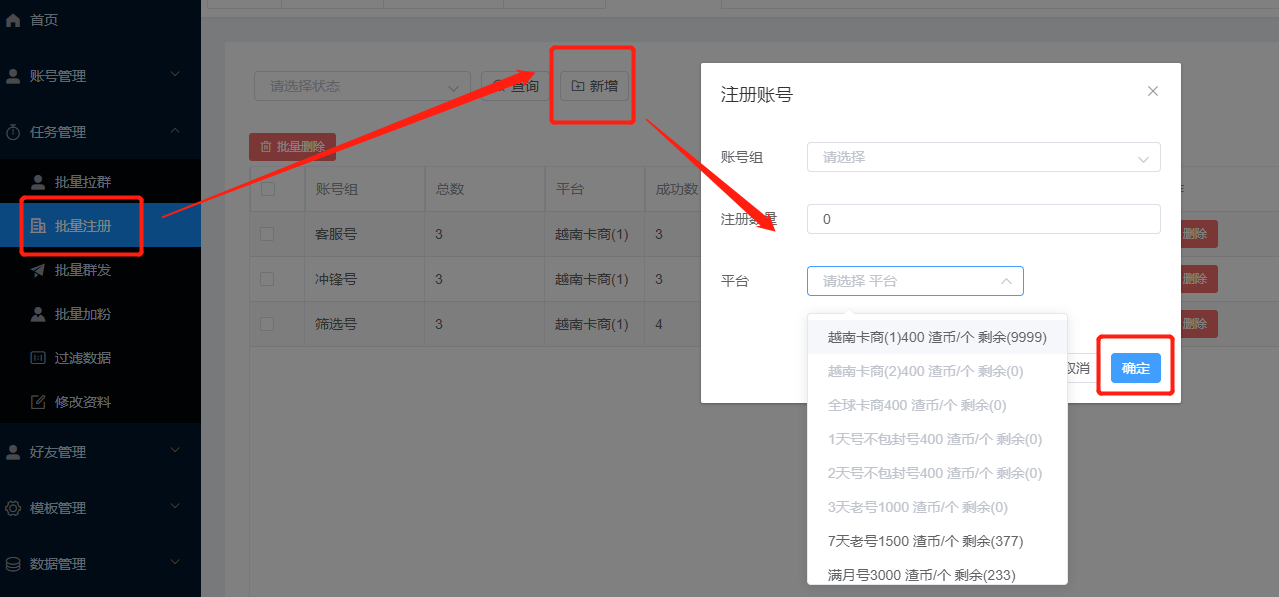 Zalo批量注册支持越南地区及老号卡商,一键选择在线批量注册。